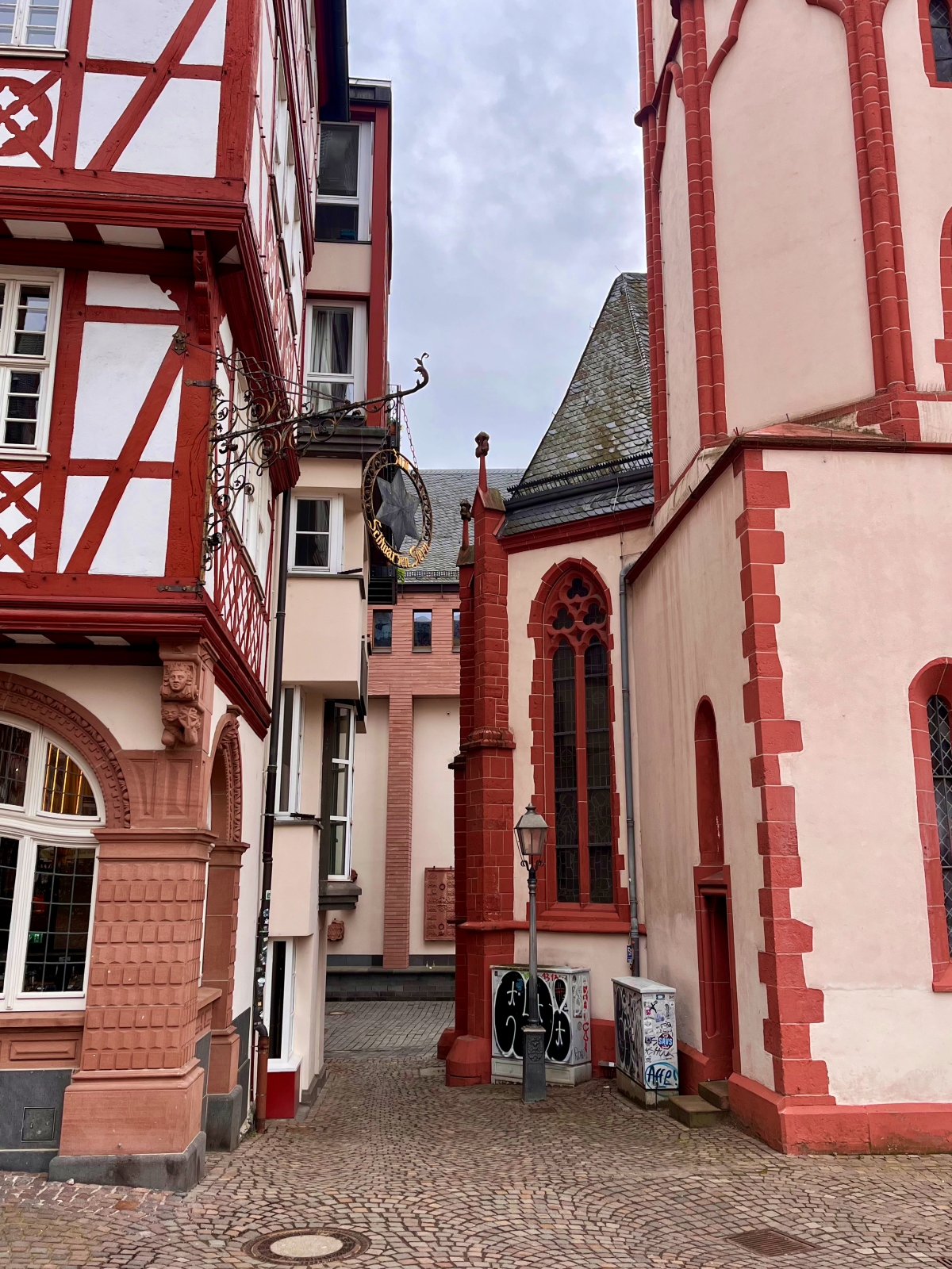 Mit dem Selbstbewusstsein des amtierenden Hessenmeisters freute ich mich auf den Lauf. Gleich bei den ersten Posten wurde ich allerdings auf den Boden der Tatsachen zurückgeholt: Wie so oft brauchte ich einige Zeit, um mich in der Karte einzufinden. Denn gleich zu Beginn ging es Richtung Main durch einige Innenhöfe, in denen ich mit dem Maßstab nicht zurechtkam. Während der Anfangsphase brauchte ich viel Zeit für die Orientierung, während der ich immer wieder genau schauen musste, welchen Durchgang ich genau anlaufen musste und welches Tor offen war. So verlor ich während der ersten vier Posten viel Zeit und hatte erst nach dem zehnten Posten das Gefühl, wirklich im Wettkampf zu sein.